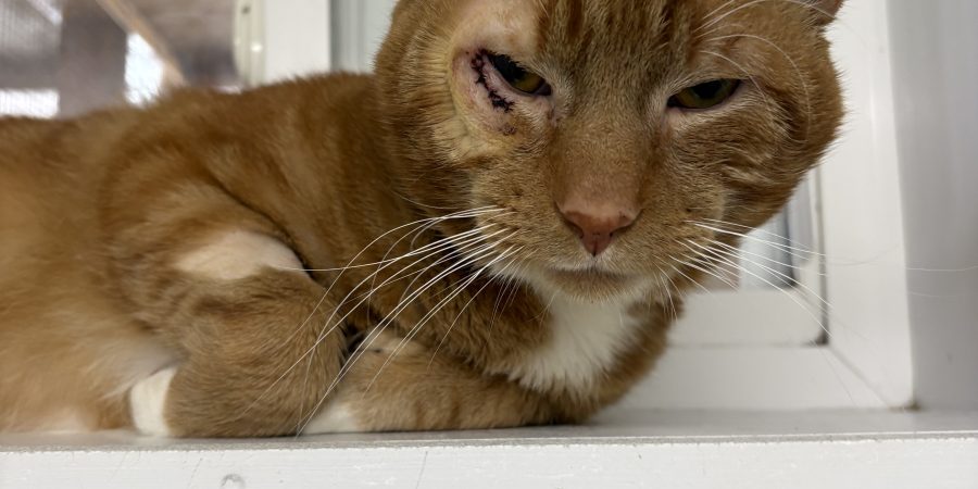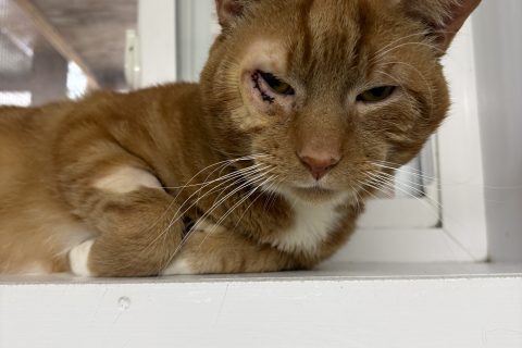 Darius is a sweet 2-3 year old boy who came to us from a home with too many kitties. This guy loves attention and pets! He is recovering from eye surgery so that’s why his eye looks like that. Once he is feeling better and more comfortable he is sure to be a super chatty… Read More Darius