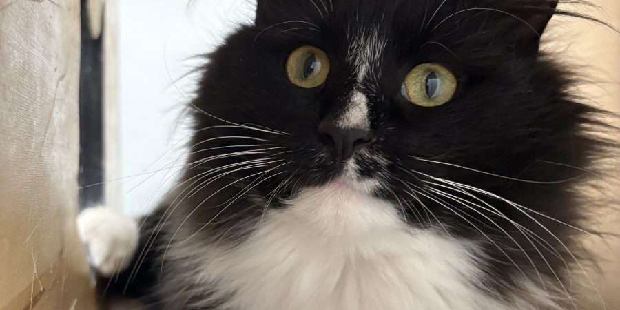 Blossom is a 8 month-1 year old girl who came to us as a stray. Blossom is an absolutely sweet girl who loves treats and being pet. She is very curious about toys and likes to play with them when we aren’t looking. She may hiss at first and likes a slow introduction but she is very friendly! She does definitely feed off of Bubbles’ energy and if Bubbles is stressed she is more stressed. She is good with other kitties, but she hasn’t been around dogs yet.