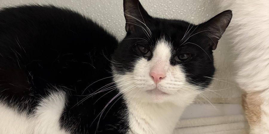 Lionel is a two year old male who came to us from a house with too many cats. He has been recovering from a respiratory infection so he has not shown us his personality too much yet. He is a little bit nervous, but he does enjoy pets and snuggles. He loves other cats! He hasn’t been around dogs yet.