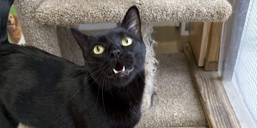 Midnight is 2 year old male that came to us as a surrender. He is a sweet boy who loves to rub against your legs. He can be quite underfoot as he likes to follow you around. He can be a little moody, so he would do best with an experienced cat owner. Midnight absolutely needs to be the only animal and we would recommend a home without young children.