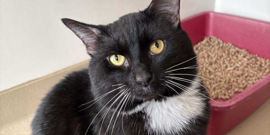 Saint is a 2-3 year old boy who came to us as a stray. Saint is a super sweet boy who likes to sit at his condo door and ask for attention with his little meow. He’s very friendly and he loves to be pet on his sweet round head. He would be good with other cats, but we are not sure about dogs yet. Saint is FIV+.